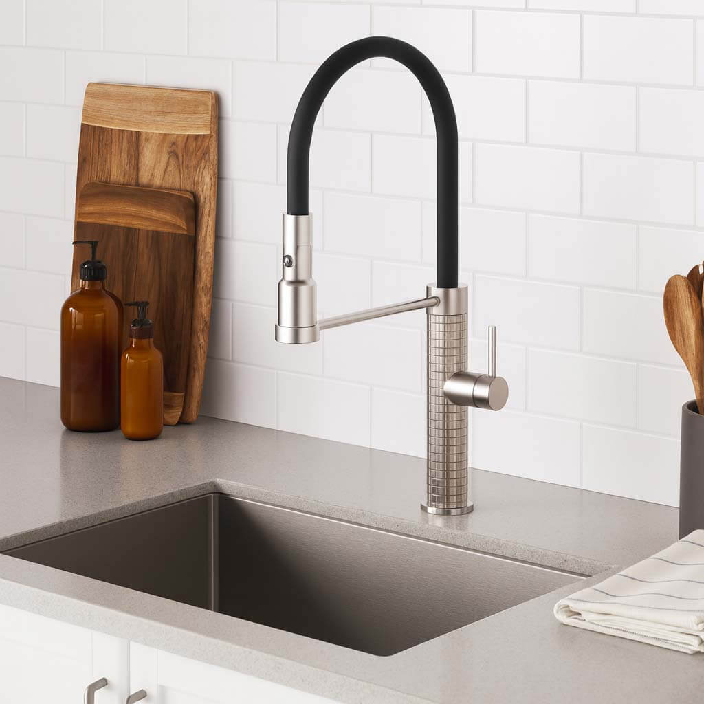 Μπαταρία κουζίνας Avra με ντουζ. Η μοντέρνα αναμεικτική μπαταρία κουζίνας συνδυάζει αντοχή, λειτουργικότητα και κομψό σχεδιασμό, ιδανική για κάθε νεροχύτη. Kατασκευασμένη από ορείχαλκο (σώμα μπαταρίας) και PVC για έξτρα αντοχή. Το ρουξούνι είναι περιστρεφόμενο από ABS υλικό διαθέτει 2 λειτουργείες εκροής νερού και σύστημα ταχείας σύνδεσης. Σπιράλ σύνδεσης: SUS304 ανοξείδωτο πλέγμα για ζεστό & κρύο νερό.