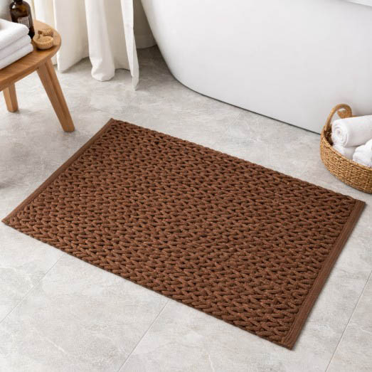 Πατάκι μπάνιου με ιδιαίτερη καφέ πλέξη σε μέγεθος 50x80cm. Ο ιδιαίτερος πλεκτός σχεδιασμός του προσθέτει φυσική υφή και αίσθηση ζεστασιάς, ταιριάζοντας ιδανικά σε μοντέρνα, minimal αλλά και boho διακόσμηση. Η διάσταση 50×80 εκ. το καθιστά ιδανικό για τοποθέτηση μπροστά από την μπανιέρα, το ντους ή τον νιπτήρα