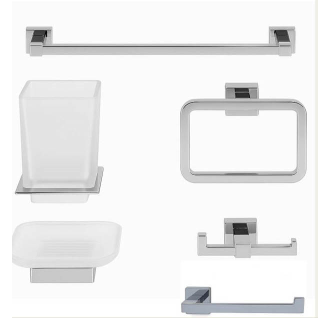 Σετ αξεσουάρ μπάνιου 6 τεμαχίων σε μαύρο και chrome απόχρωση . Κρεμαστό σετ από ανοξείδωτο ατσάλι και γυαλί. Ο minimal σχεδιασμός του συνδυάζει λιτές γραμμές και υψηλή λειτουργικότητα, προσφέροντας μια διαχρονική αισθητική που ταιριάζει σε κάθε σύγχρονο χώρο.