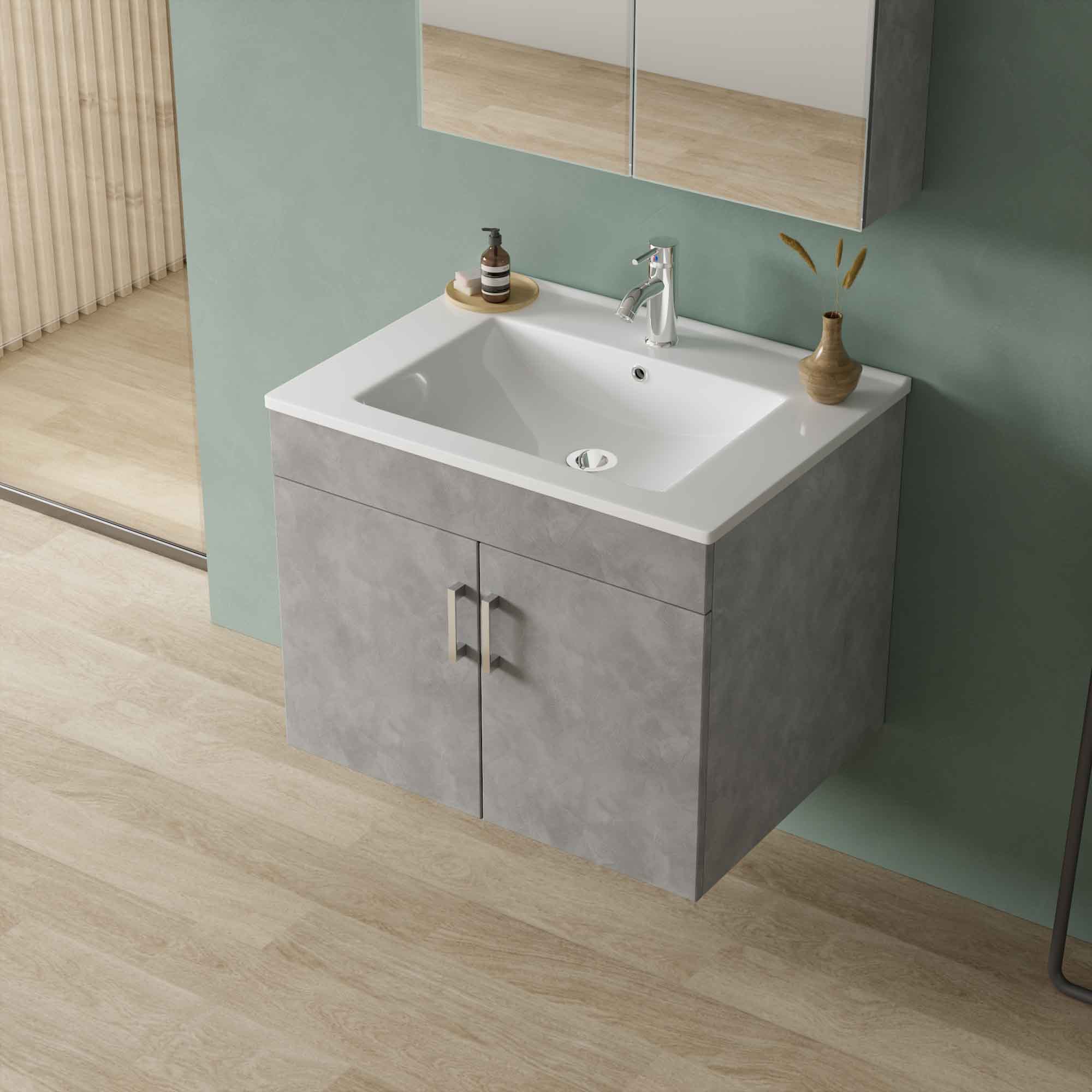 Κρεμαστό σετ Easyline Grey έπιπλο μπάνιου διαθέσιμο σε 3 διαστάσεις. Κατασκευασμένο από MDF υλικό και νιπτήρα ένθετο slim από πορσελάνη. Διαθέτει καθρέφτη / ντουλάπι με 3 εσωτερικά ράφια. Ο νιπτήρας διαθέτει οπή για μπαταρία και υπερχείλιση. Μοναδικός σχεδιασμός για την οργάνωση του μπάνιου σας.