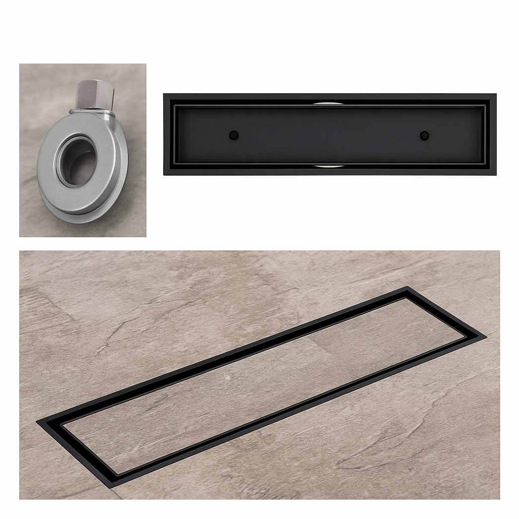 Σιφώνι γραμμικό 60cm με ουρά κατάλληλο για επικάλυψη με πλακάκι σε μαύρο ματ χρώμα. Inox υλικό κατασκευής για μεγάλη αντοχή. Είναι κατάλληλο για εγκατάσταση σε ντουζιέρες, εξασφαλίζοντας άριστη λειτουργικότητα.