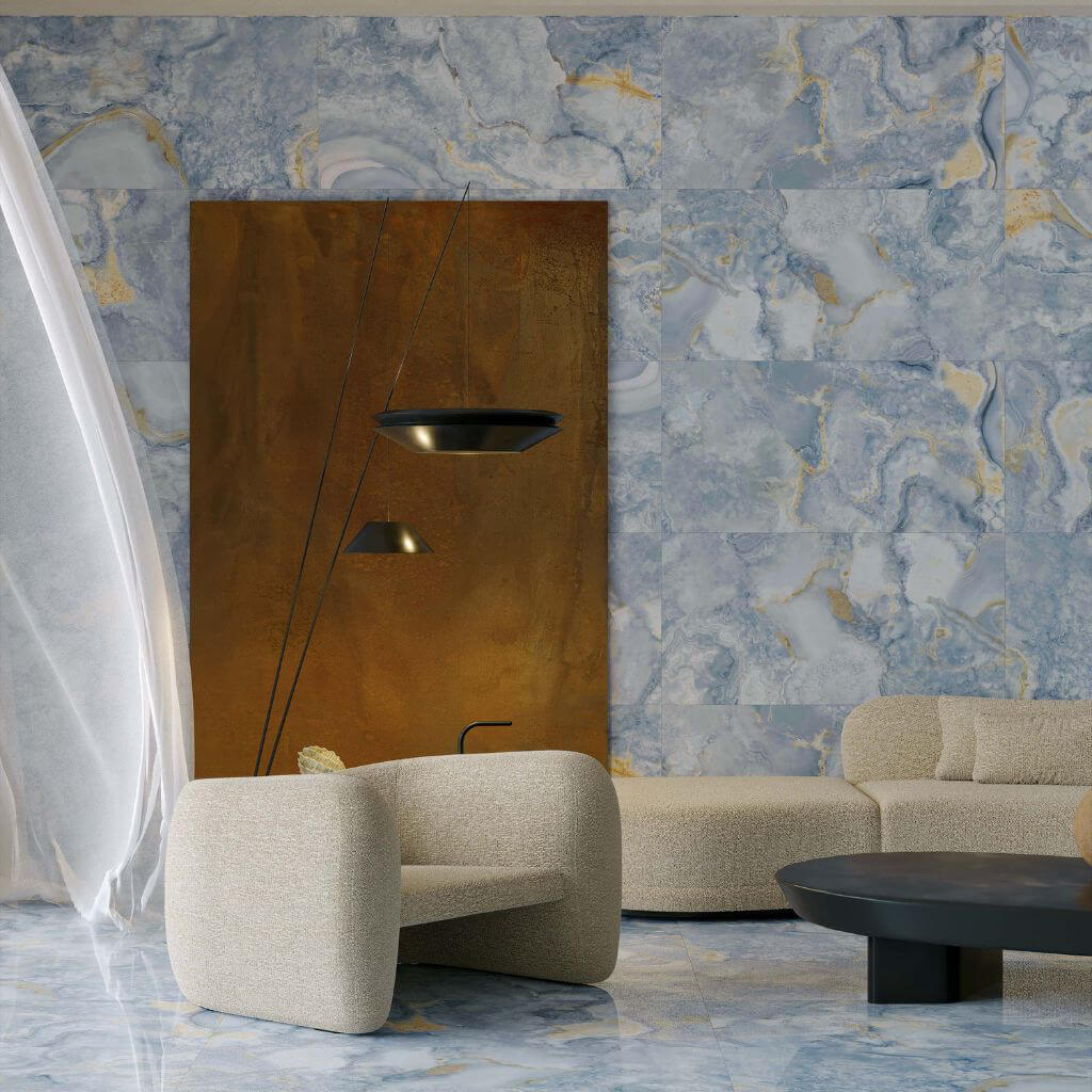 Atlantik πλακάκι τύπου μάρμαρο διάστασης 60x120cm. Ένα εντυπωσιακό πλακάκι σε μπλε απόχρωση με μοναδικά νερά και με Full Lappato υφή.  Κατάλληλο για σύγχρονους και πολυτελής χώρους. Πλακάκι rectified (R). Η διάστασή του 60x120cm προσφέρεις καθαρές γραμμές και ακριβή τοποθέτηση με λίγους αρμούς, για έναν καθαρό και ενιαίο αισθητικά αποτέλεσμα. Ιδανική επιλογή για ξενοδοχειακούς χώρους, airbnb,βίλες, γραφεία, το μπάνιο αλλά και το σαλόνι.