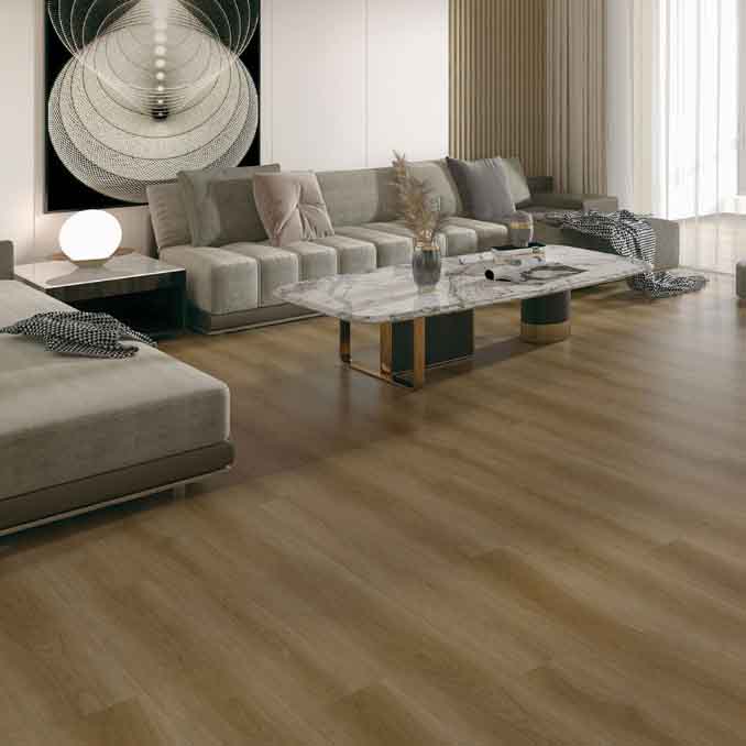 Betulla Roble βινυλικό δάπεδο SPC. Εύκολη τοποθέτηση, μεγάλη αντοχή και αδιάβροχο είναι μια εξαιρετική επιλογή για επαγγελματικούς και οικιακούς χώρους. Με σκούρα φυσική απόχρωση ξύλου και matte φινίρισμα, αποτελεί ιδανική επιλογή για χώρους με rustic ή μοντέρνα διακόσμηση.