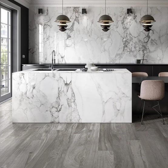 Elle Marble White Slab τύπου μάρμαρο της RAK CERAMICS. Γυαλιστερή υφή, και μοναδικός σχεδιασμός σε φωτεινούς χρωματικούς τόνους. Προσφέρουν ενιαίο, πολυτελές και μοντέρνο αποτέλεσμα χωρίς πολλές ενώσεις και γραμμές αρμού. Κατάλληλο για εσωτερικούς χώρους και custom κατασκευές. Δεν ενδείκνυται για δάπεδα.