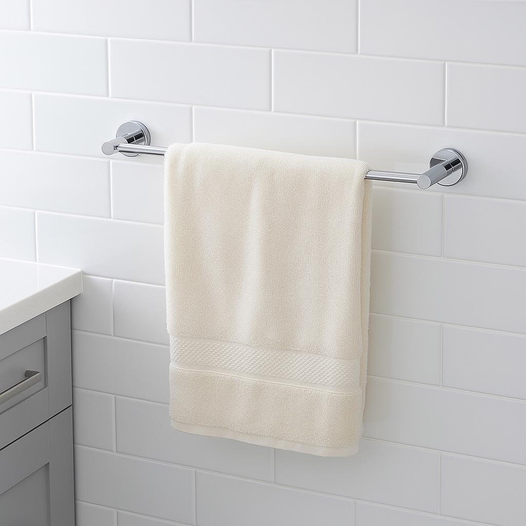Ανακαλύψτε την μεταλλική πετσετοκρεμάστρα της σειράς Gala 60 cm – ιδανική για μοντέρνα και λειτουργικά μπάνια. Κομψός σχεδιασμός, ανθεκτικά υλικά και εύκολη τοποθέτηση με βίδες οι οποίες υπάρχουν στην συσκευασία.