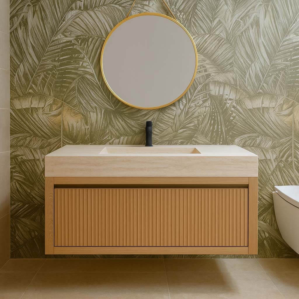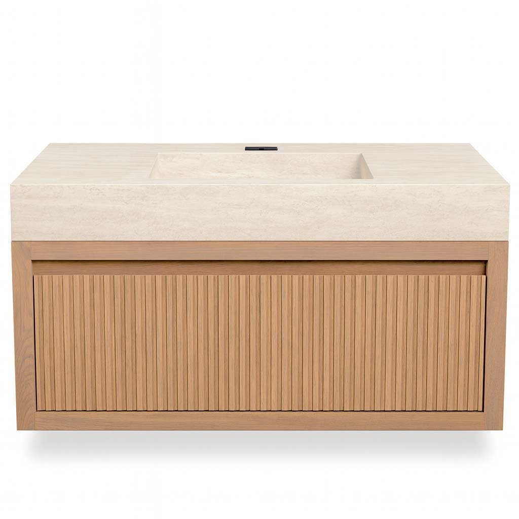Kimolos βάση επίπλου κρεμαστό διαθέσιμο σε 2 μεγέθη. Κατασκευασμένο από φυσικό ξύλο με minimal σχεδίαση και κάθετες οριζόντιες γραμμές στο μπροστινό του μέρος. Διαθέτει 1 μεγάλο βαγονέτο με μηχανισμό ομαλής κύλισης προσφέροντας άνετους αποθηκευτικούς χώρους . Το έπιπλο δεν διαθέτει καπάκι και είναι ιδανικό για τοποθέτηση νιπτηροπάγκου. Συνδυάζει πρακτικότητα, αισθητική ταιριάζοντας εξαιρετικά σε μπάνια με minimal και boho αισθητική.
