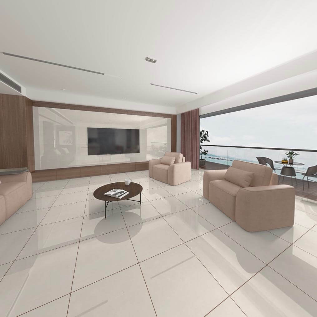 Πλακάκι Mismo Gris με λαμπερό φινίρισμα και εμφάνιση τσιμέντου . Κατάλληλη επιλογή για τοποθέτηση σε πάτωμα και τοίχο. Πλακάκι rectified (R). Minimal και διαχρονικό για φωτεινούς χώρους.