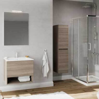 Kρεμαστό έπιπλο μπάνιου Oslo Rovere Fumo με νιπτήρα καθρέφτη και φως. Περιλαμβάνει καθρέφτη 60x80cm με φωτισμό Led και γυαλιστερό νιπτήρα από πορσελάνη με βάση για μπαταρία και υπερχείλιση. Το έπιπλο έχει σύστημα soft close για αθόρυβο και εύκολο κλείσιμο. Διαθέτει ακόμα ένα ράφι εσωτερικά .