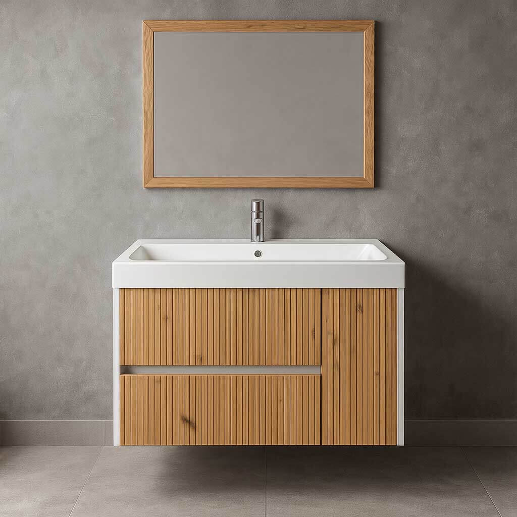 Kρεμαστό έπιπλο μπάνιου Portofino Front Rover Oro F40 βάση επίπλου με ενσωματωμένο νιπτήρα και 3 χώρους αποθήκευσης (δεν περιλαμβάνετε ο καθρέφτης). Διαθέτει επένδυση Laminate από χρυσή δρυς απόχρωση μεμβράνης PVC πάχους 0,4mm. O γυαλιστερός νιπτήρας διαθέτει βάση για μπαταρία και υπερχείλιση. Υπάρχουν 2 συρτάρια και μια πόρτα για αποθήκευση αντικειμένων με ριγωτό φινίρισμα. Soft-close system για ομαλό και αθόρυβο κλείσιμο. Μια minimal και ταυτόχρονα μοντέρνα επιλογή για να διαμορφώσετε πρακτικά και λειτουργικά τον χώρο του μπάνιου σας. Στη σύνθεση συμπεριλαμβάνετε η βάση επίπλου. Συνδύασέ το με τον κατάλληλο καθρέφτη / μπαταρία για να έχεις ένα ολοκληρωμένο αποτέλεσμα στον χώρο.