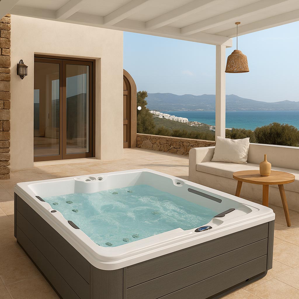 Ακριλικό υδρομασάζ 2 ατόμων με λευκή εσωτερική απόχρωση και γκρι εξωτερική επένδυση από την KSV.