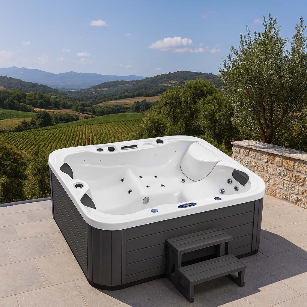 Υδρομασάζ 3 ατόμων White Aura με γκρι ξύλινη επένδυση από την KSV.