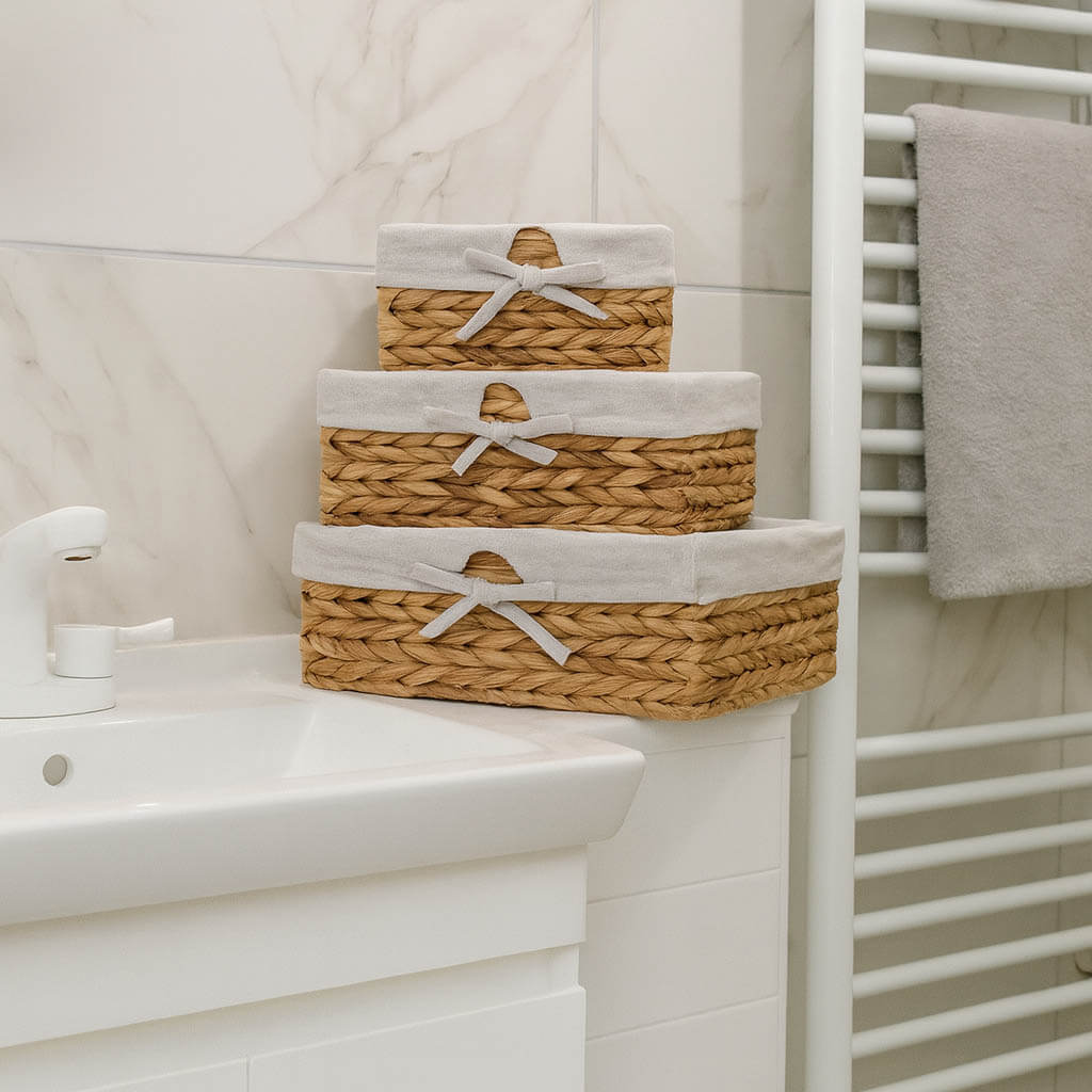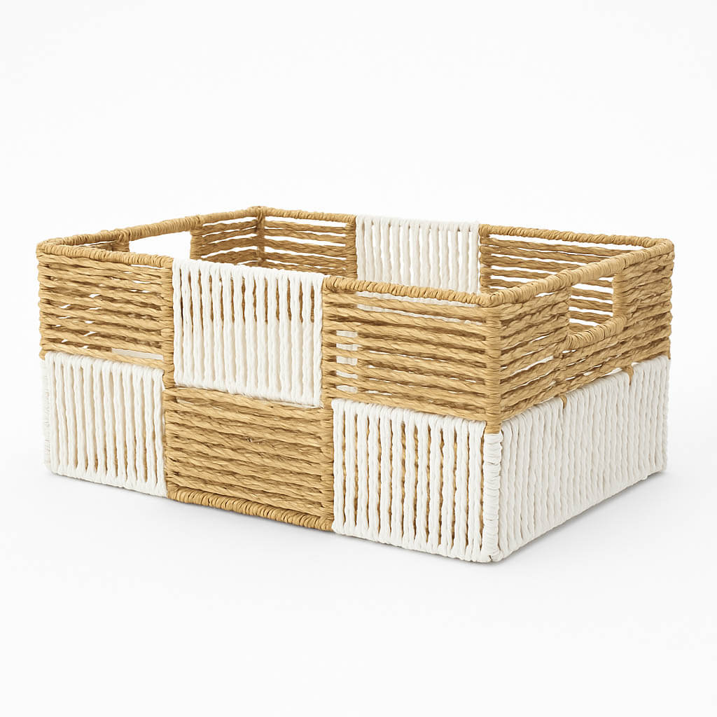 Σετ 3 Τεμαχίων Ψάθινο Δίχρωμο Καλάθι Οργάνωσης