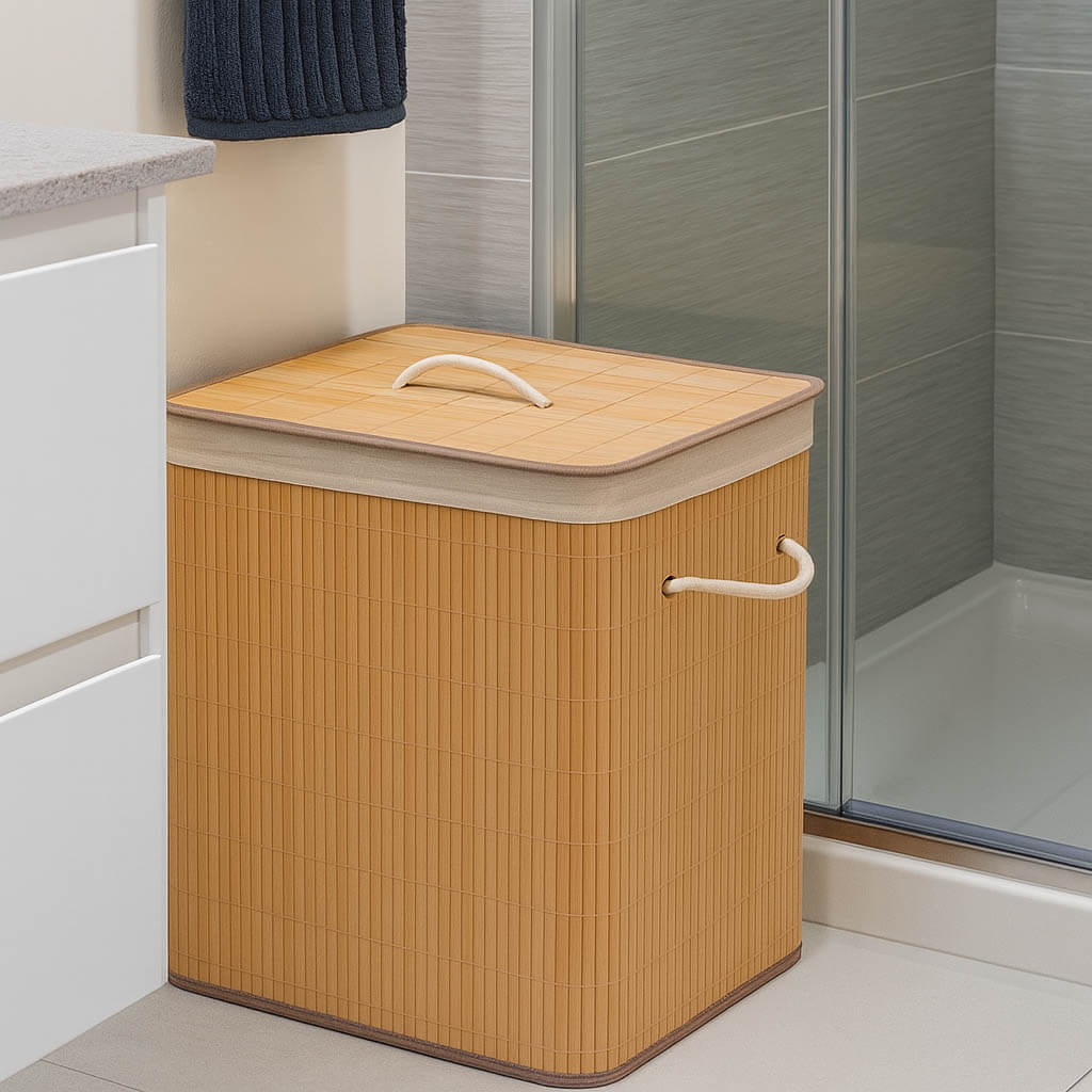 Καλάθι Απλύτων Bamboo Πλέξη Με Αποσπώμενο Καπάκι