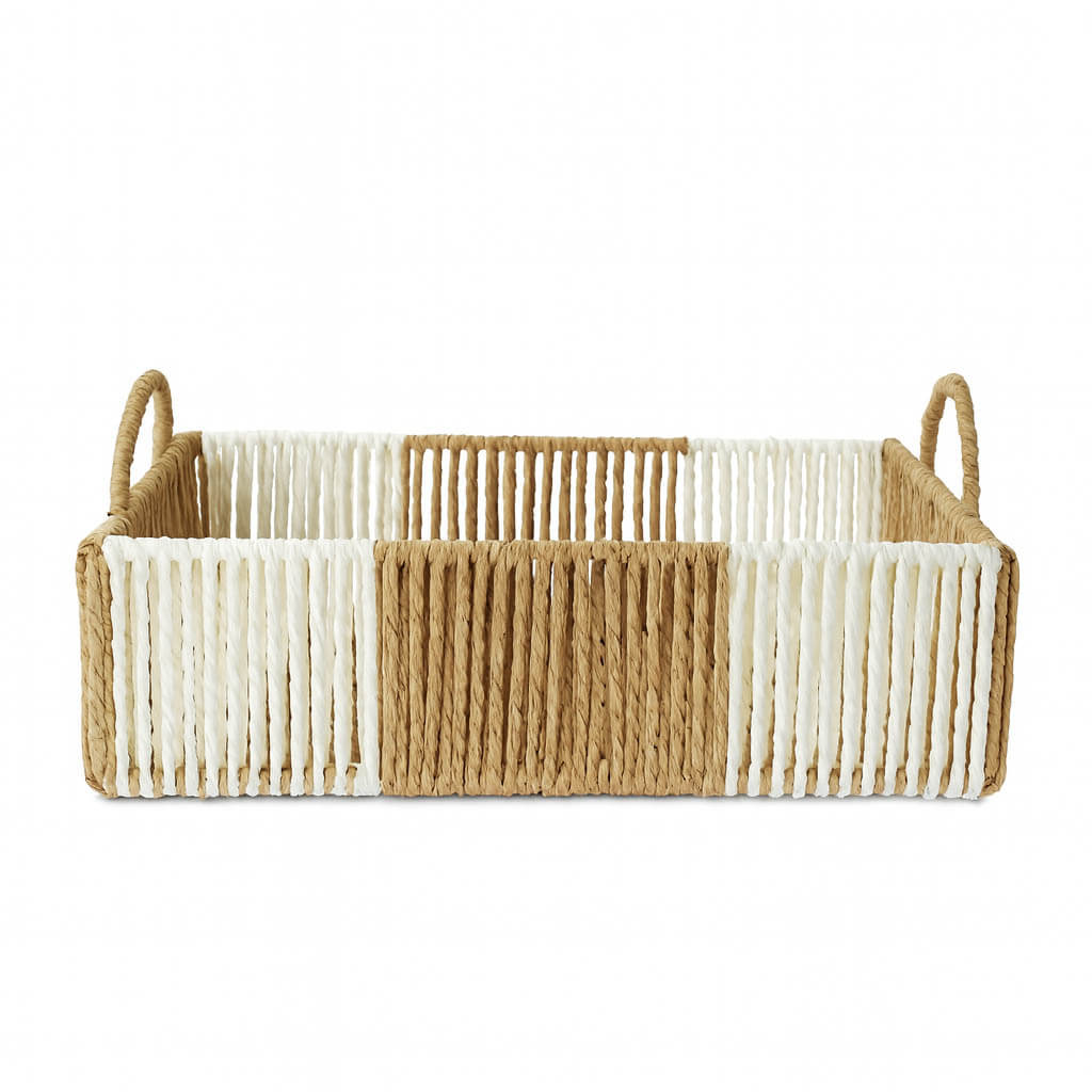 Σετ 2 Τεμαχίων Δίχρωμος Ορθογώνιος Διακοσμητικός Δίσκος / Καλάθι Με Χερούλια