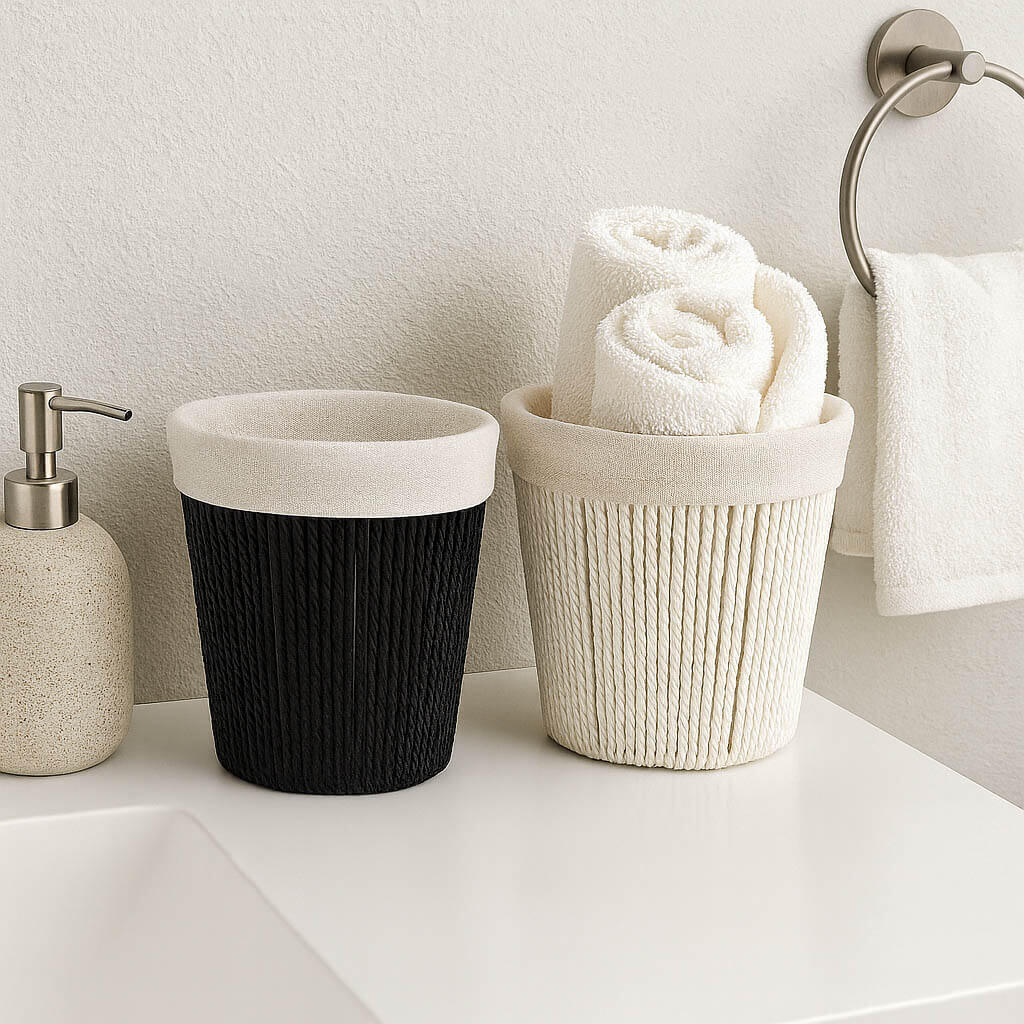 Καλάθι Aπλύτων Στρογγυλό Με Μαύρη Λεπτομέρεια